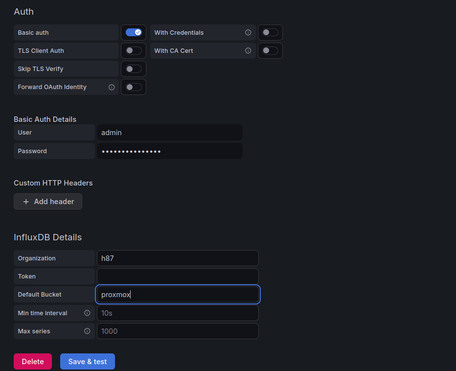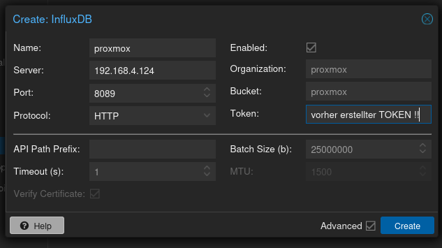 Fertig Proxmox sendet jetzt daten an Influxdb2
