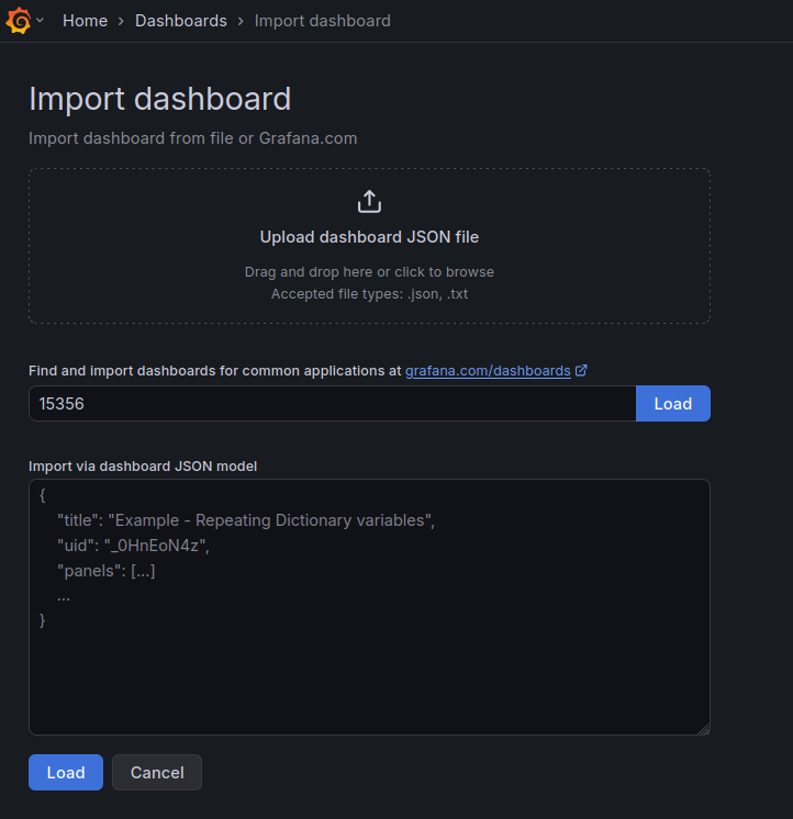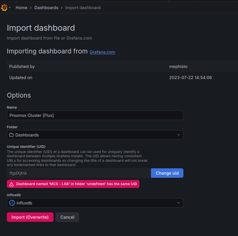 Danach erstellen wir ein Dashboard und Importieren zumbeispiel folgendes Template: 15356